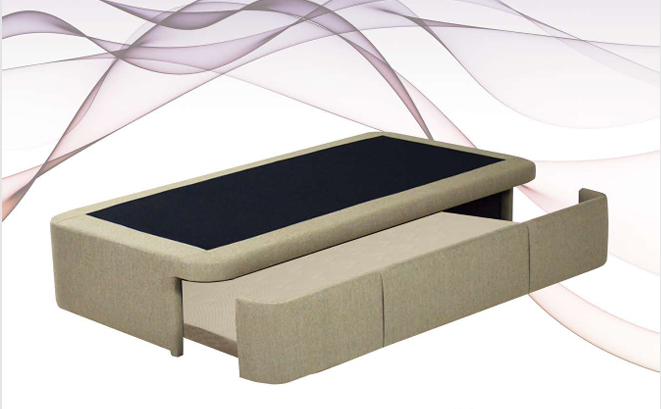 Cama abatible con tapa reforzada y gran capacidad de almacenaje.