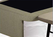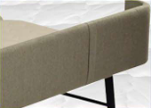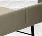 La tapa está construida en tubo de acero con 3 barras transversales y tablero de aglomerado de 10 mm, tapizada en malla 3D transpirable con marco en polipiel.
