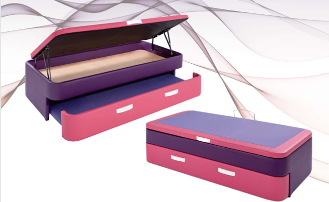 Estructura fabricada en tubo de acero de 30x30x1 mm, con tirador de madera disponible en gris, cerezo, wengué o blanco. La tapa está construida en tubo de acero con 3 barras transversales y tablero de aglomerado de 10 mm, tapizada en malla 3D transpirable con marco en polipiel. Capacidad máxima del colchón de la cama inferior: 17 cm, con un largo total del canapé + 9 cm del colchón superior. Altura total: 38 cm. Tapizado estilo inglesa.