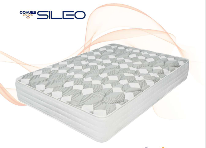El colchón SILEO ofrece un soporte preciso y estable gracias a su carcasa ensacada reforzada Lumbar de 10 filas y zonas Nesting 8-170, diseñada para distribuir el peso corporal de manera uniforme. Incorpora planchas de espuma D-30 de 20 mm en ambas caras, junto con un material de célula abierta que permite el paso del aire interior, asegurando una excelente transpiración durante el descanso. En la cara A, presenta un acabado en tejido Urdimbre, combinado con una capa de visco D-40 de 13 mm y otra de visco D-20 super suave de 20 mm, ofreciendo una acogida progresiva, ergonómica y confortable que se adapta de forma natural a la forma del cuerpo.